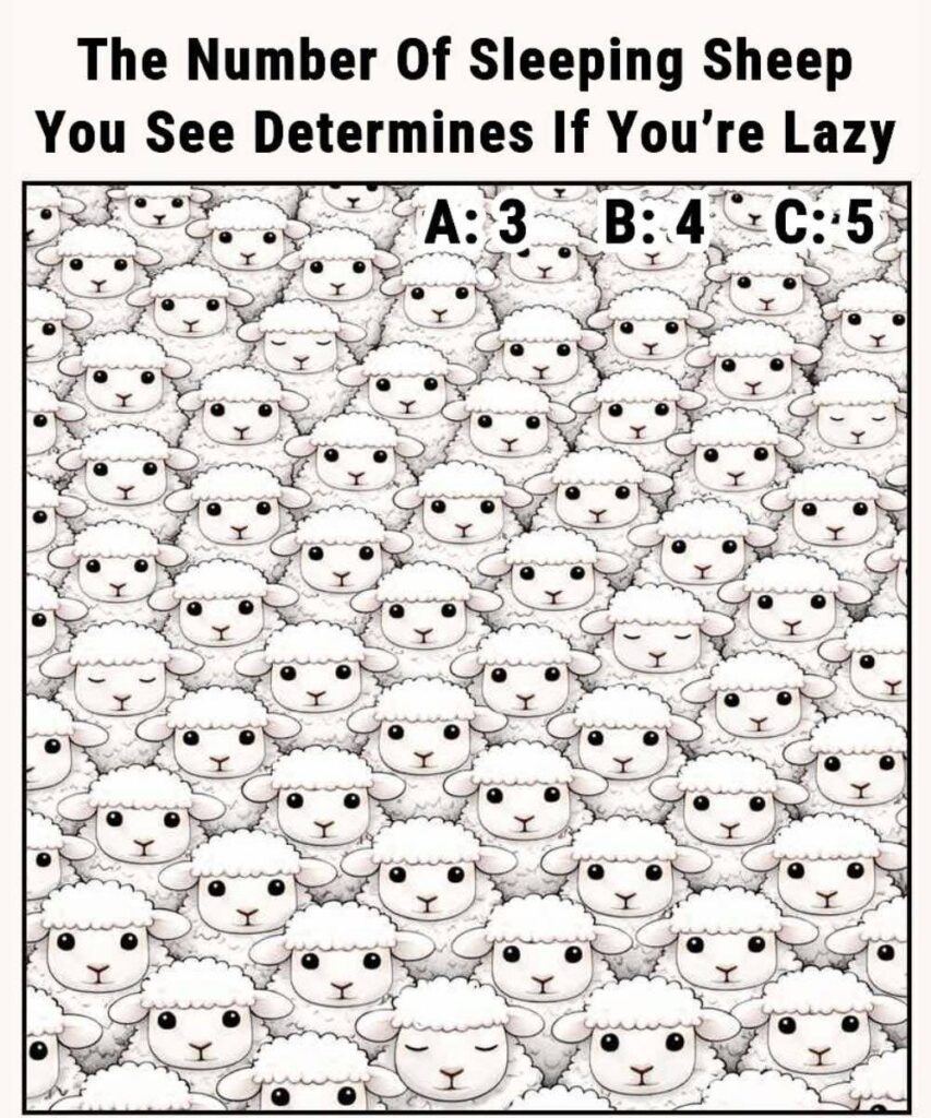 At first glance, the image looks simple: a field packed with adorable cartoon sheep. But hidden among the wide-eyed faces are a few sleepy ones with their eyes closed. The challenge? Count how many sleeping sheep you can find.